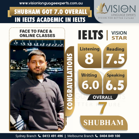 " I studied at Vision language experts for 2 months and got my desired score in PTE. They have one of the best tutors and also Vishal sir helped me alot to fix my weak spots. Highly recommend for Pte and Naati. ".